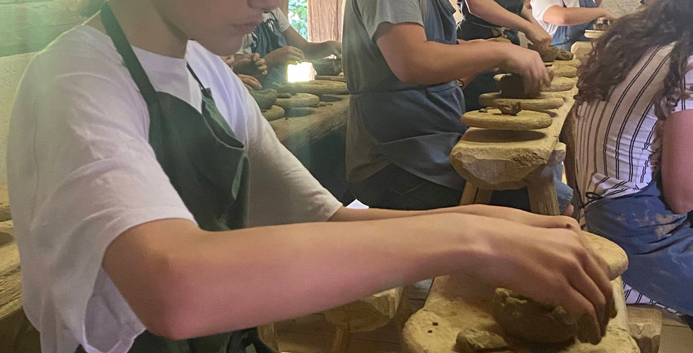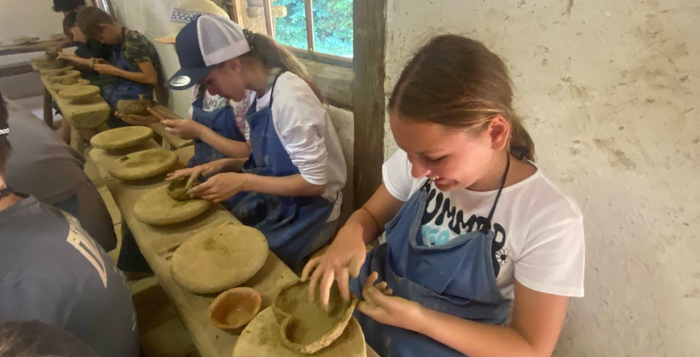 Im Keltendorf wurde für die Zweitklässler die Vergangenheit lebendig, nicht nur durch die Besichtigung der Lehmhütten, wie Sommer- und Winterhaus, dem Brotbackhaus, Speicher, Herrenhaus, Webhaus etc. und eines Hügelgrabes, sondern auch durch verschiedene Workshops, wie das Weben und Töpfern, bei denen wie anno dazumal tolle Bändchen, Figuren und Schalen hergestellt wurden.
